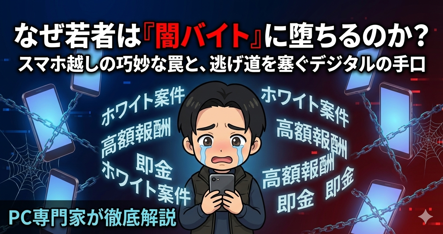 しかし、デジタルの専門家としてこの問題を分析すると、そこには社会経験の浅い若者を確実に罠にかけ、逃げ道を塞ぐための極めて合理的で悪質なシステムが存在することがわかります。彼らは単に「判断を誤った」のではなく、プロの犯罪集団によって心理的にも技術的にも追い詰められているのです。